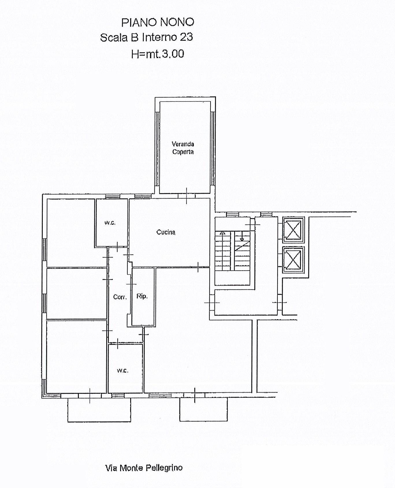 VIA MONTEPELLEGRINO In via Montepellegrino a Palermo in edificio dei primi anni '80 con servizio di portineria e 2 ascensori per ogni scala. Luminoso e panoramico 9° piano - oltre 2 piani ammezzati - di 165 mq commerciali con tripla esposizione, disposizione interna moderna e funzionale. Ingresso accogliente con porta blindata che immette subito al salone di rappresentanza con balcone sul prospetto principale. Il salone è comunicante con la cucina abitabile, caratterizzata da 2 punti luce e l'accesso al terrazzo verandato di 18,56 mq regolarmente catastato con vista a 360 gradi, dal monte Pellegrino fino al mare. La zona notte è composta da una camera matrimoniale con balcone e due camere singole con finestra. Gli ambienti sono completati da due bagni con finestra, uno dotato di vasca e l'altro di doccia, e un ampio ripostiglio per ottimizzare gli spazi. La casa si presenta in buono stato con infissi in alluminio con vetri camera, e riscaldamento autonomo con caldaia BOSCH recentemente installata. Situato in una zona ben servita e ottimamente collegata, a pochi metri dalla fermata della metropolitana e servito da attività commerciali di ogni genere.